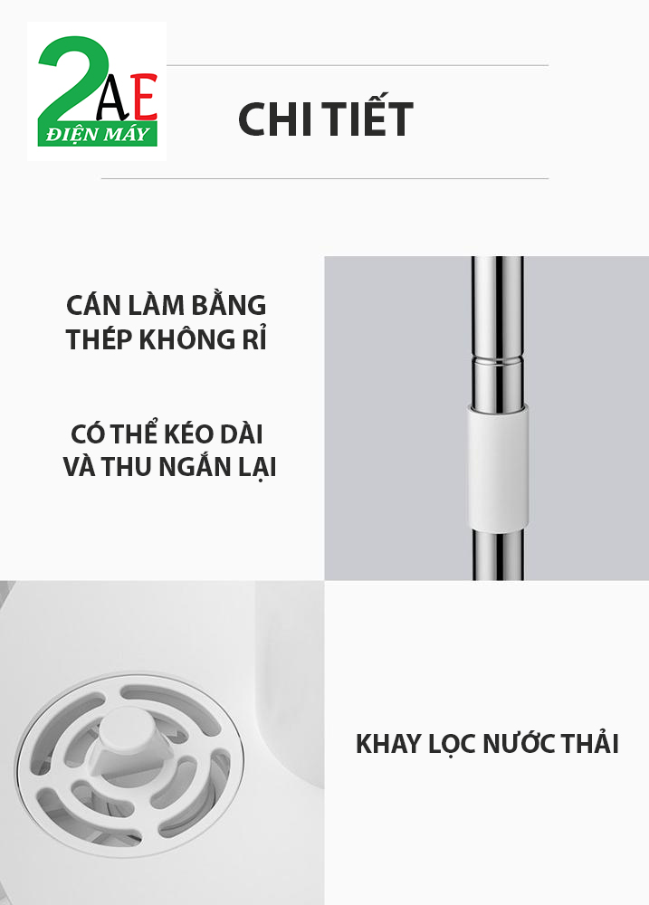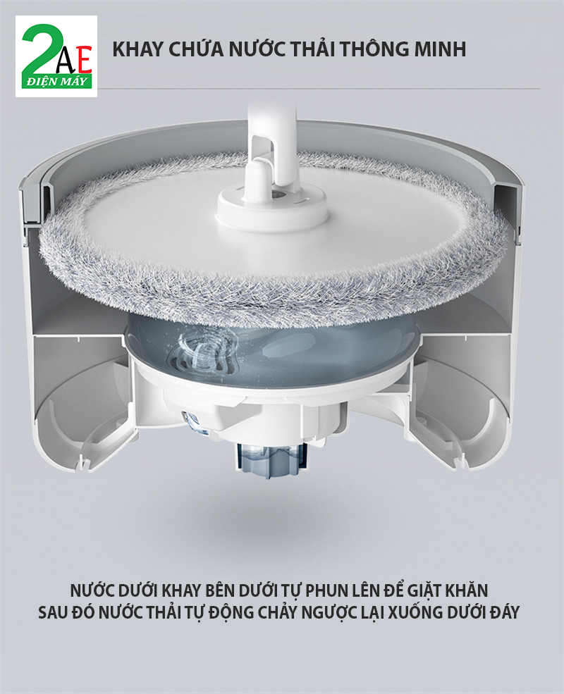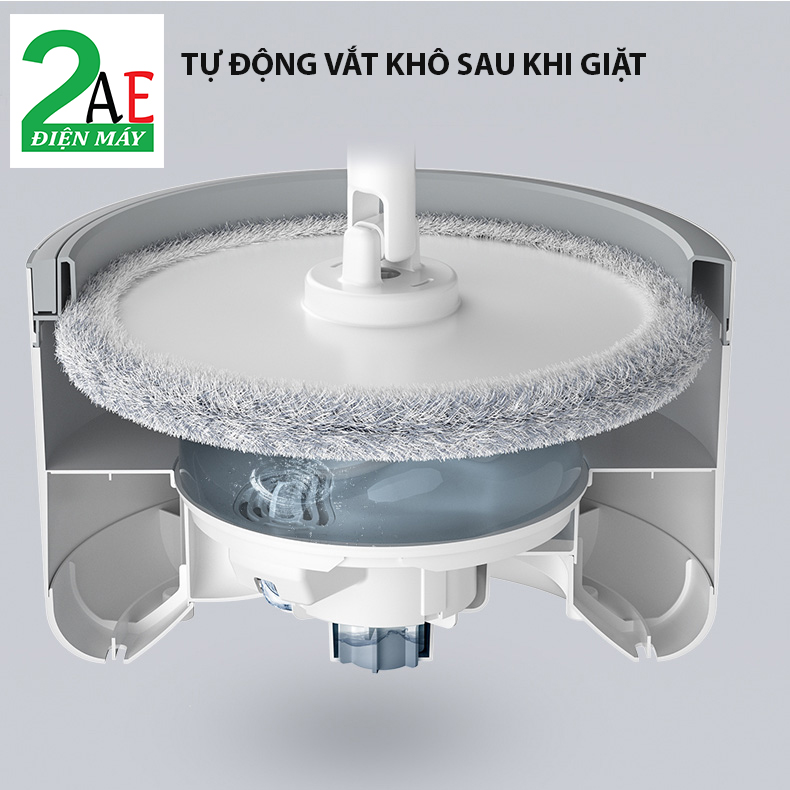 - Chế độ vắt ly tâm thông minh làm sạch bông lau chỉ sau 8-10 lần xoay. Ấn cây lau 8-10 lần xoay và nhấc lên, bông lau sẽ ráo nước để bạn có thể lau nhà.