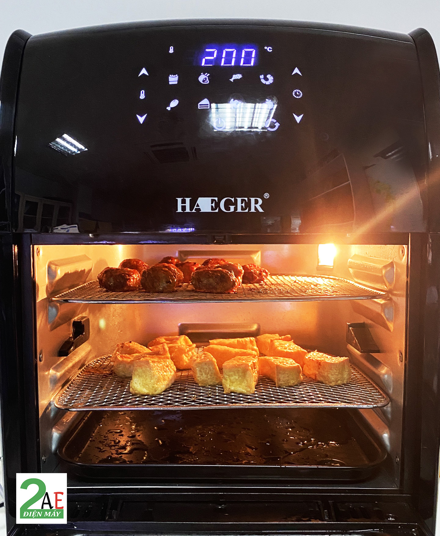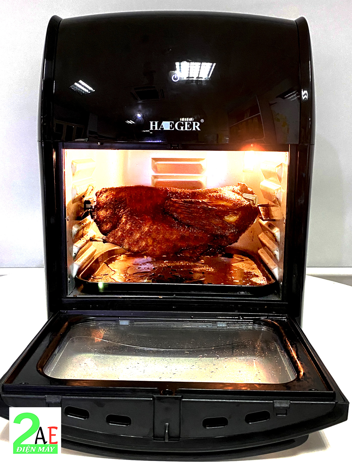 Lò chiên không dầu Haeger HG-5295 có vỏ ngoài là lớp nhựa cứng bền đẹp, chịu nhiệt tốt, dễ dàng cho việc vệ sinh lau chùi. Dung tích lớn 14 lít, có thể nướng được cả con gà 3kg, chiên lượng lớn thức ăn cho cả gia đình 5-10 người. Lòng lò được làm bằng thép không gỉ phủ chống dính nên dễ vệ sinh, an toàn khi nấu ăn. Chức năng nấu đa dạng, dễ dàng lựa chọn các món ăn theo chế độ cài đặt sẵn, hoặc có thể tự tùy chỉnh nhiệt độ và thời gian theo sở thích.