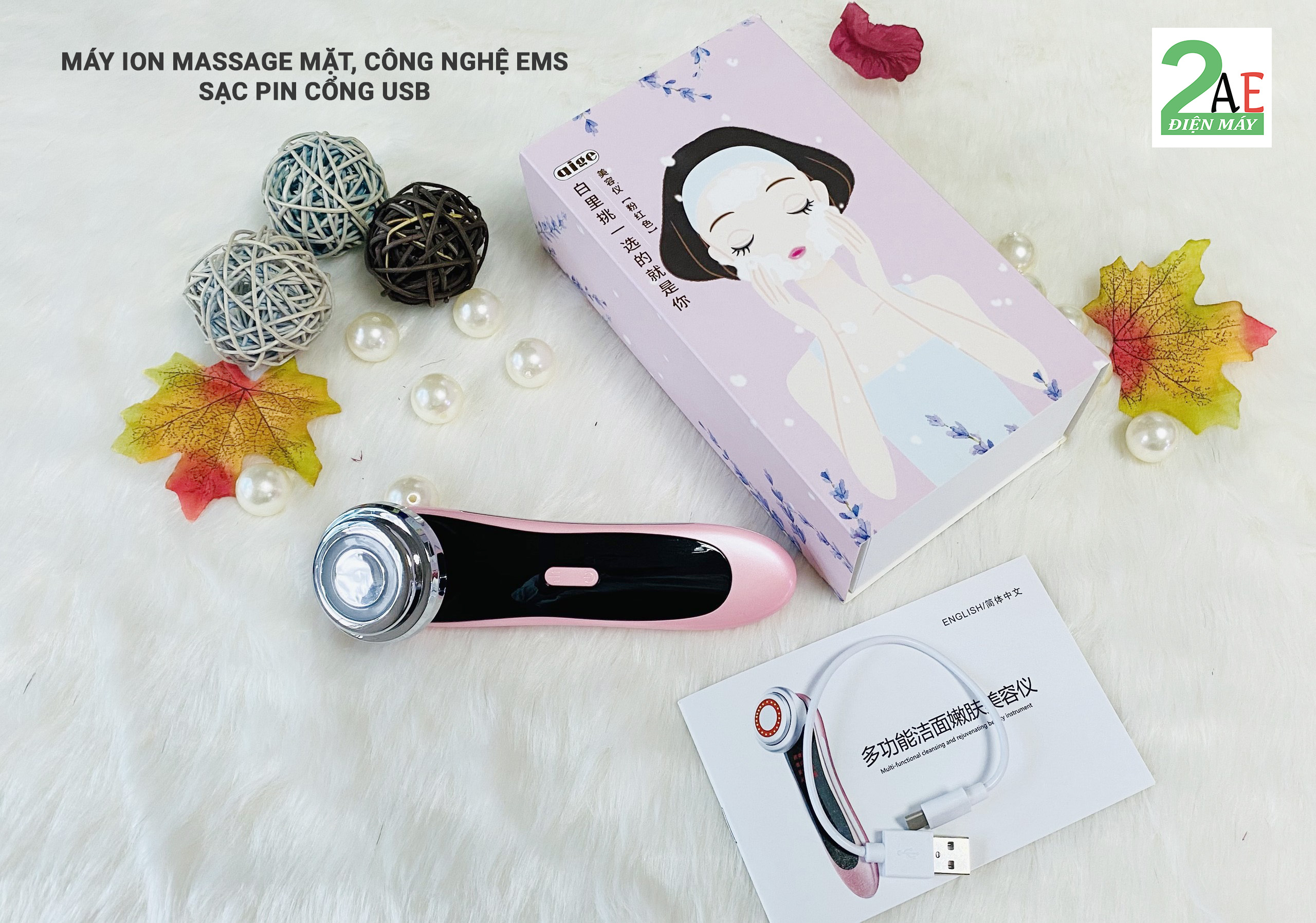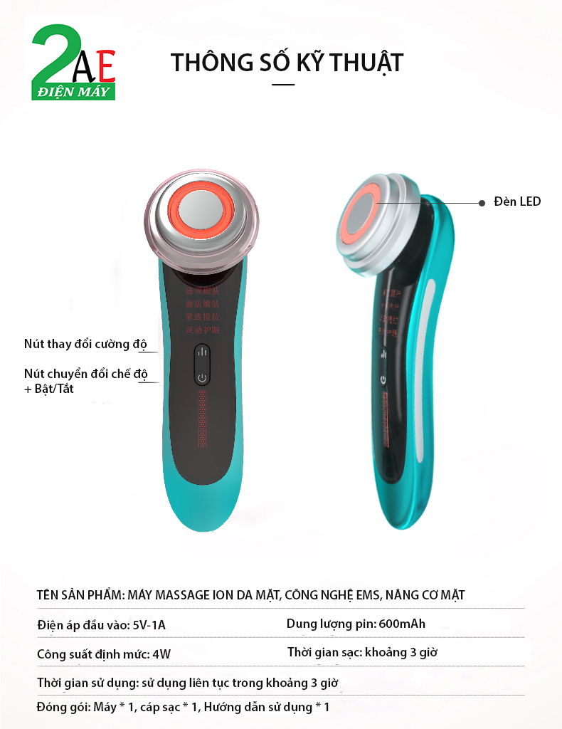 Máy ion massage mặt cao cấp, xung điện EMS Qige, sạc pin cổng USB