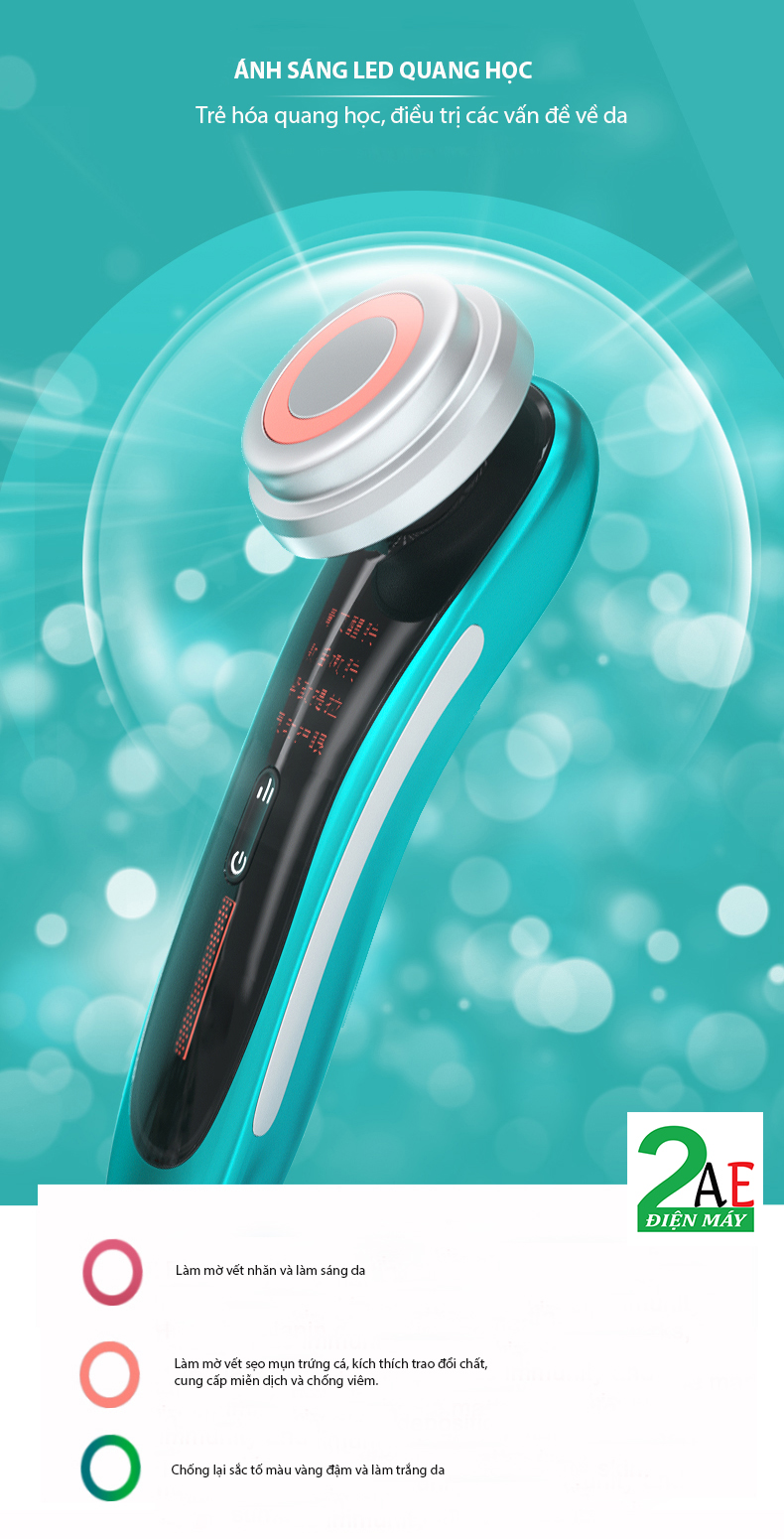 3. Ánh sáng lượng tử: (Ánh sáng đỏ: làm mờ các nếp nhăn, giúp da săn chắc; Ánh sáng xanh: làm mờ sắc tố vàng đậm, làm trắng da;)