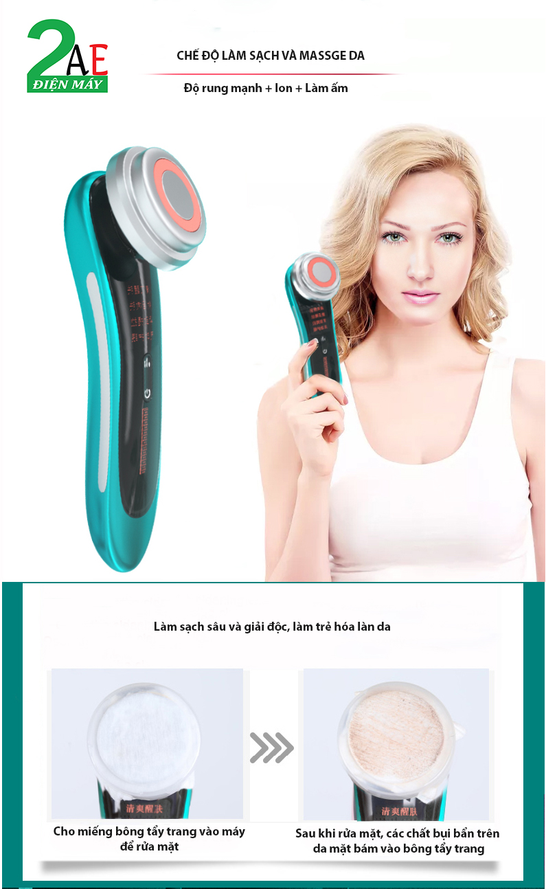 4. Massage rung mạnh: sử dụng kích thích điện áp rung 3D tần số cao để thư giãn da, tăng độ đàn hồi và thúc đẩy quá trình chuyển hóa tế bào da.