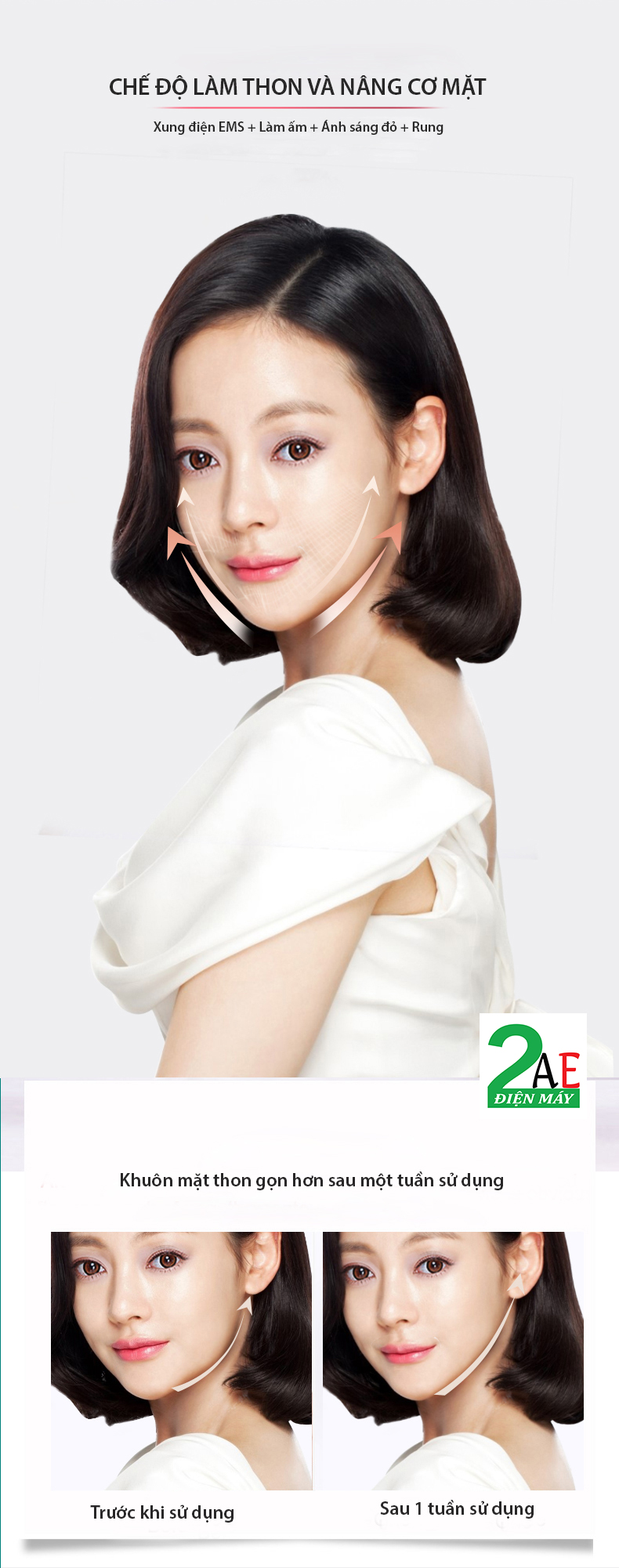 1. Công nghệ vi dòng EMS: Xung điện EMS kích thích chuyển động cơ trên làn da, giúp da đàn hồi hơn.